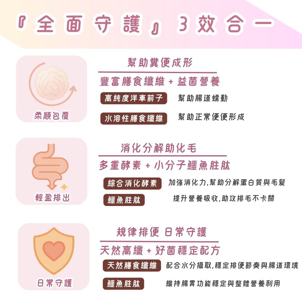 分解食物與毛髮,減少毛球堆積、守護消化力