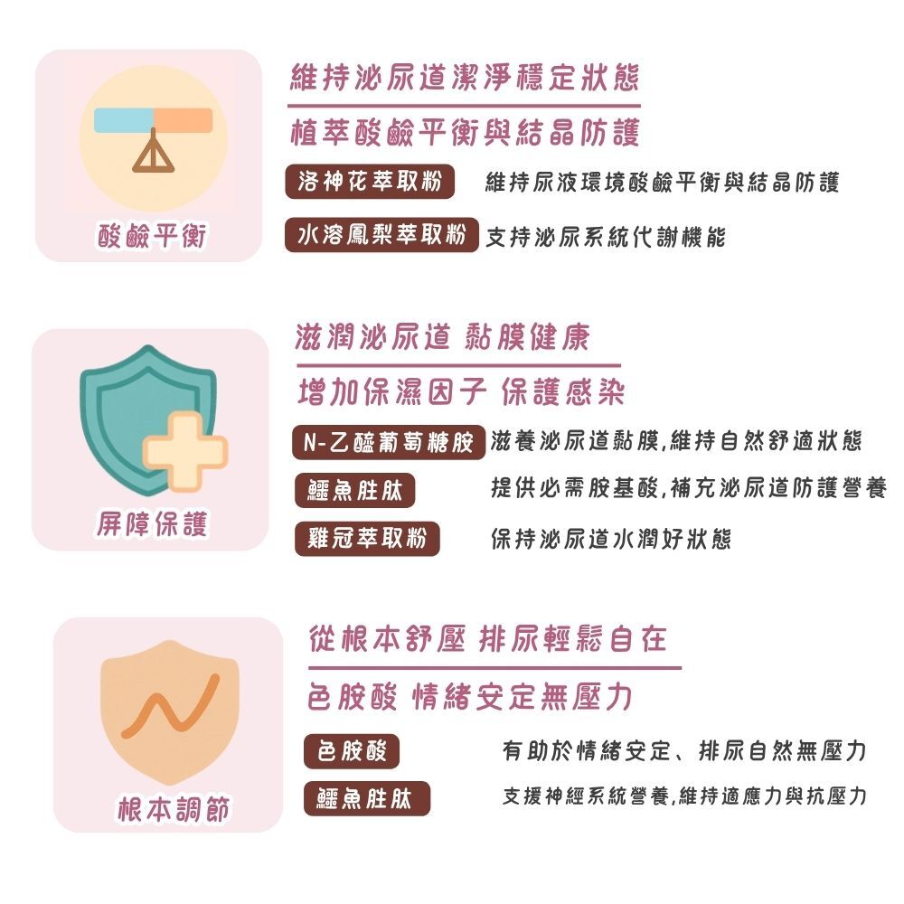 維持泌尿道舒適環境,幫助調節免疫與情緒壓力